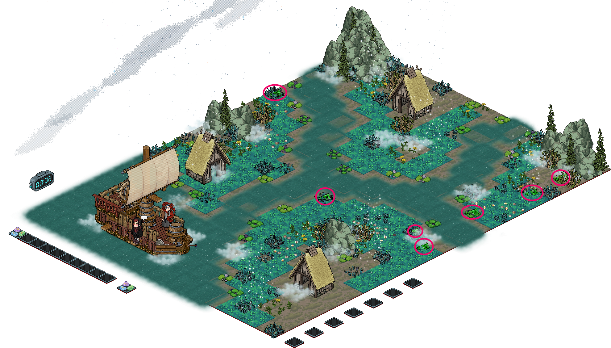 Sammle die pink markierte Minze ein, indem du dich neben sie stellst, und „*“ schreibst.