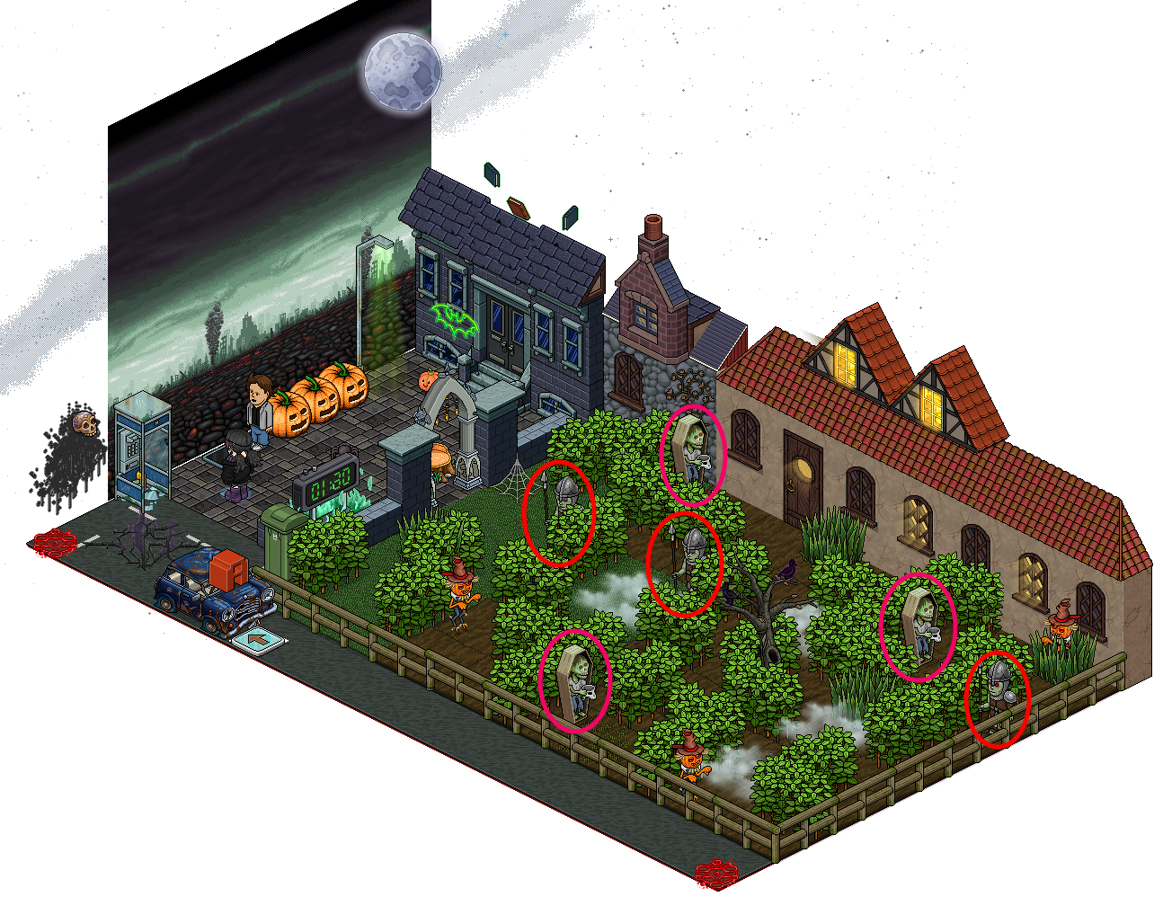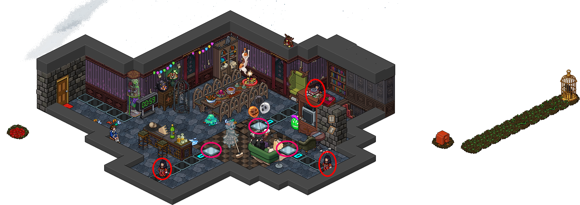 Hole dir von jedem der drei rosa markierten Butler jeweils ein Getränk, ohne dich von den Zombies berühren zu lassen.