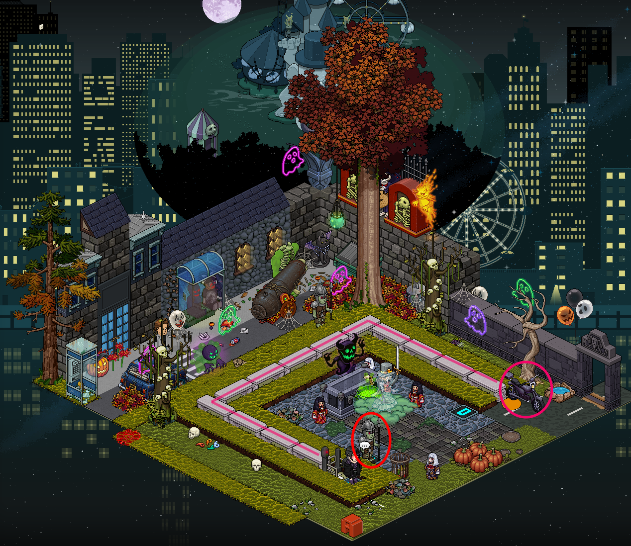 Gelange über die Betonbänke auf das rosa markierte Motorrad. Sei hierbei schneller als der Zombie! Sobald er die Zahlenfliese erreicht, hast du verloren.